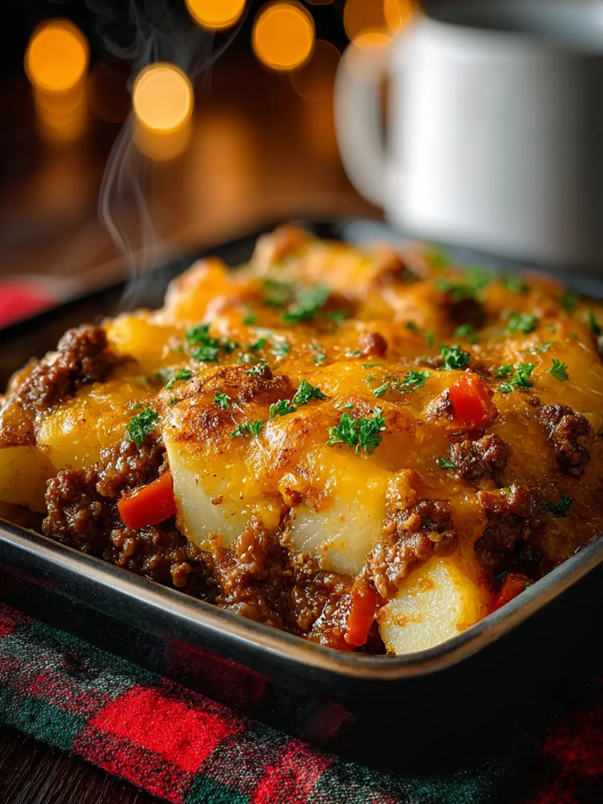 A hearty beef and potato casserole that is perfect for a family dinner.