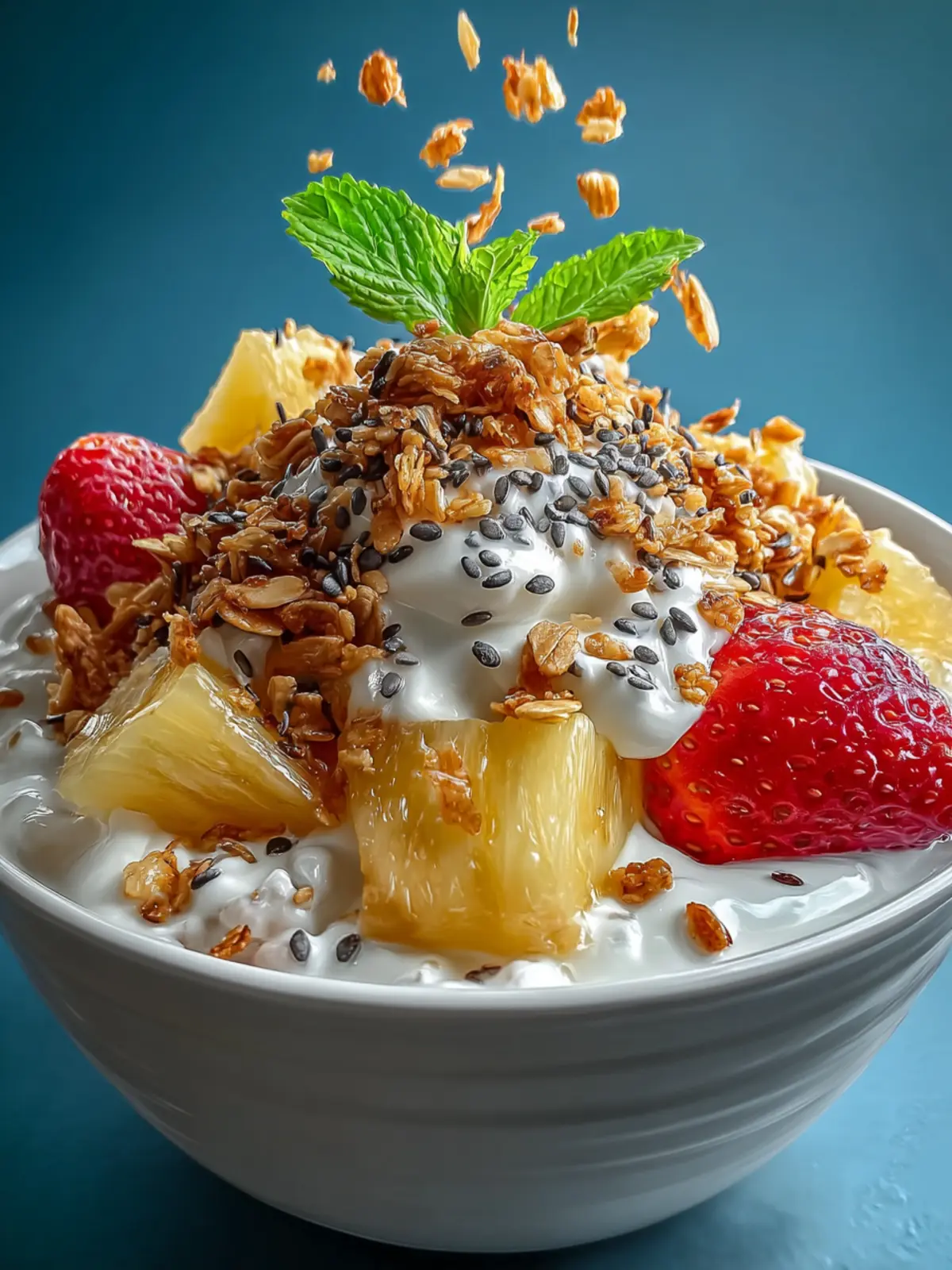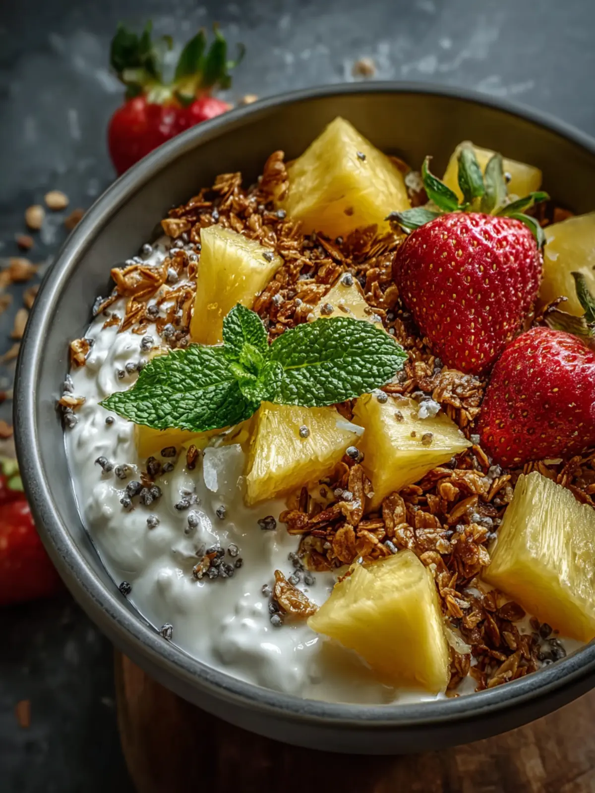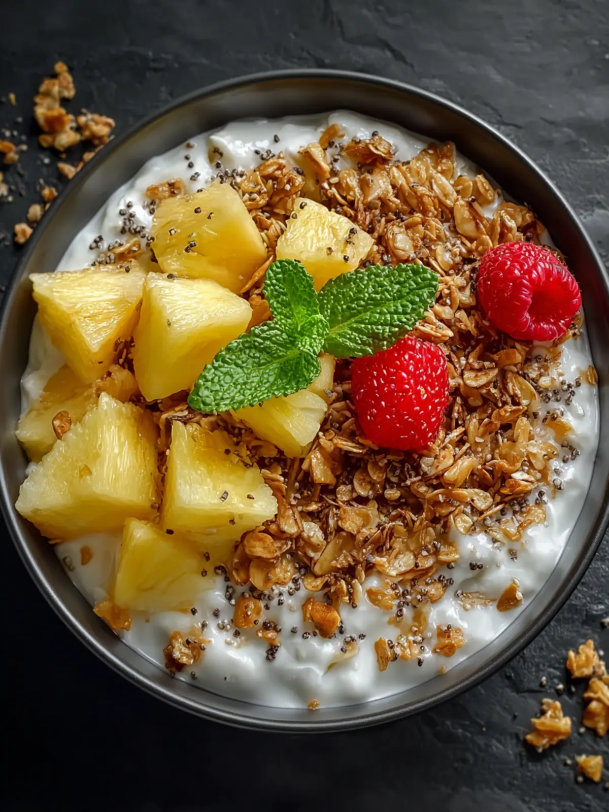 Visual Appeal: This bowl is as much a feast for the eyes as it is for the palate. The bright yellow of pineapple against the white of the cottage cheese and the golden granola creates a visually stunning dish that’s Instagram-ready.