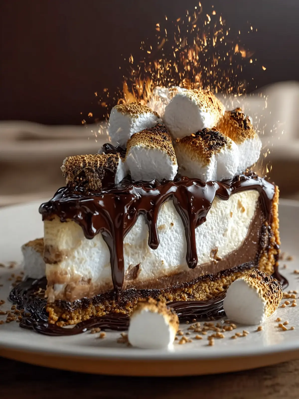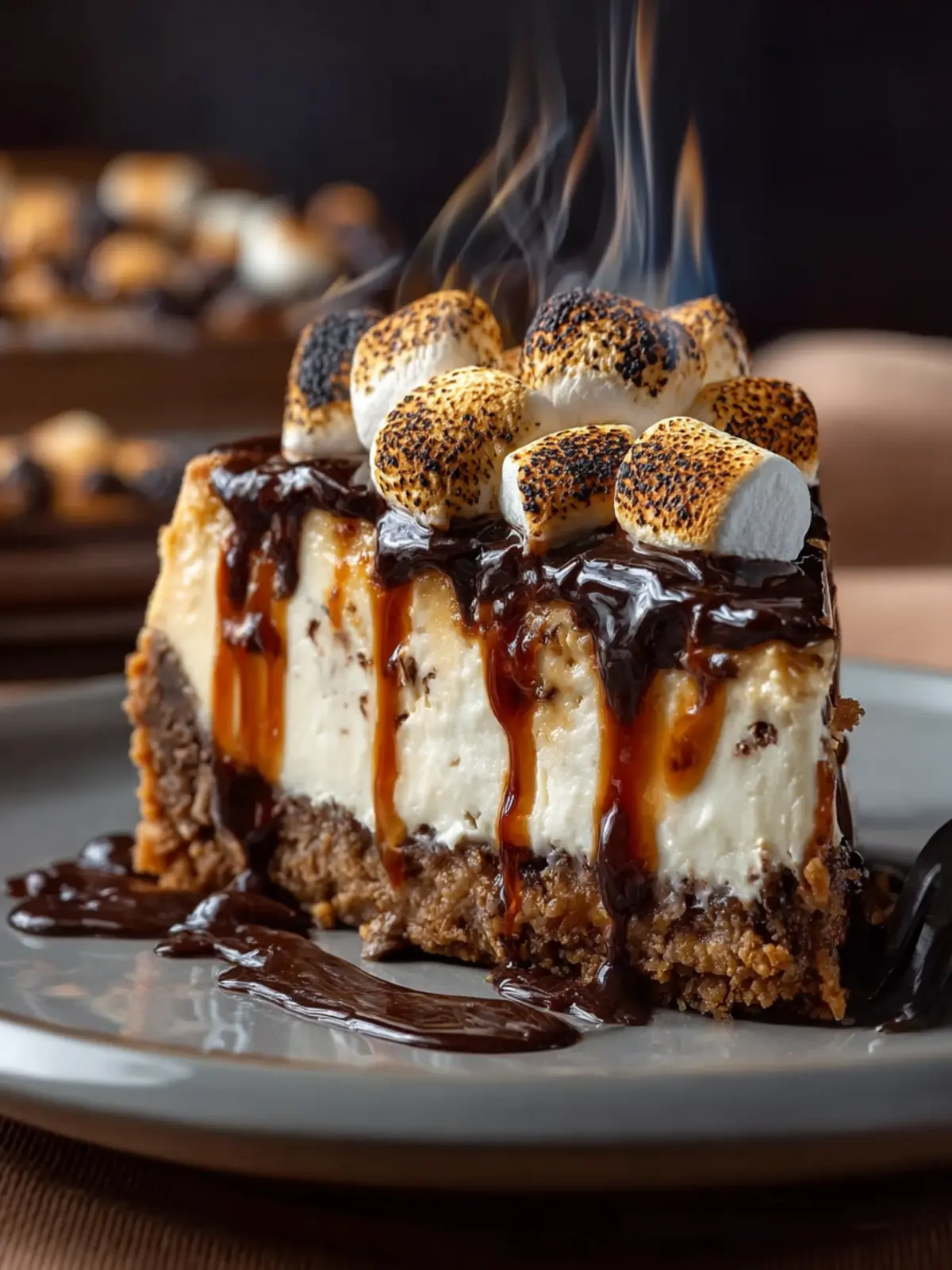 This cheesecake brings together all the classic components of s’mores in a luscious, irresistible way. The graham cracker crust provides a perfect crunch, while the creamy filling is infused with chocolate and marshmallow flavors, simulating the classic campfire treat in every bite.