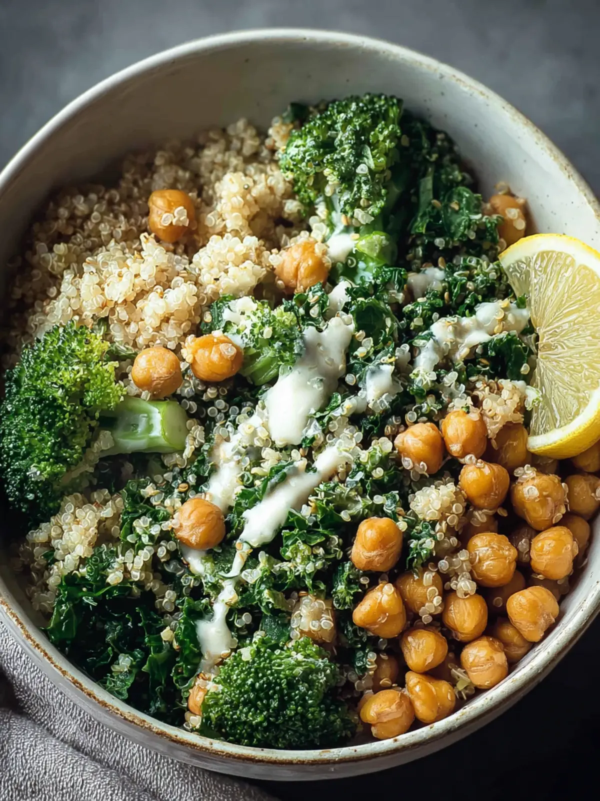 Don’t underestimate the power of a zesty lemon dressing! Its bright acidity elevates the entire dish, bringing together the rich, earthy flavors of chickpeas and the hearty texture of quinoa. You’ll find yourself reaching to refill your plate!