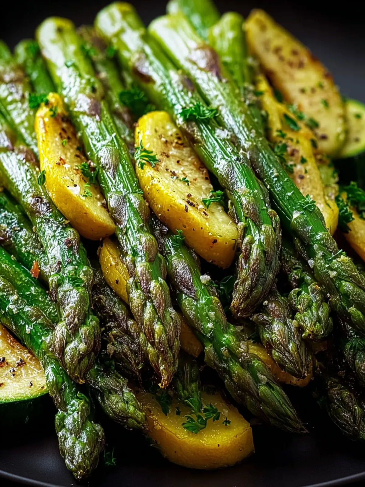 A Symphony of Flavors: The combination of asparagus and zucchini brings together the fresh, earthy notes of the garden. Tossed in garlic, these veggies reach a caramelized finish that’s hard to resist.
