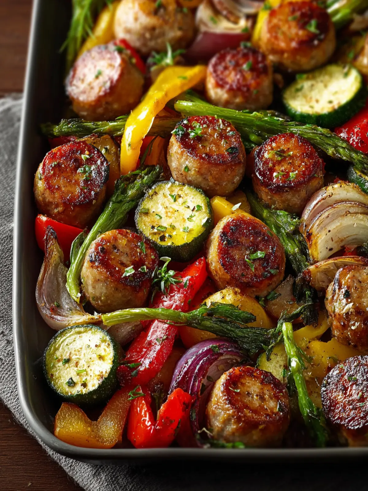 A delicious and healthy roasted turkey sausage and vegetables dish, perfect for easy weeknight dinners.